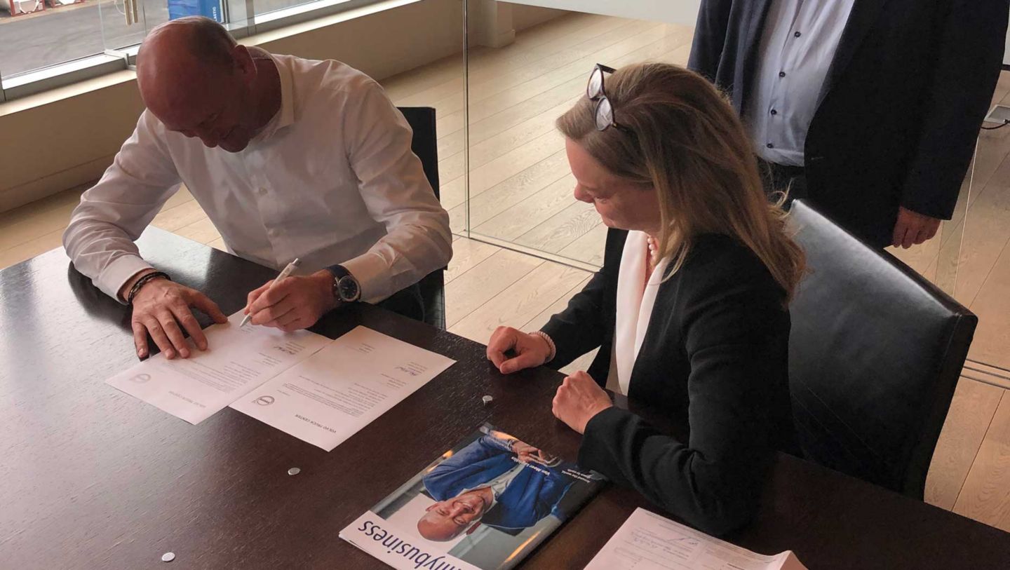 Jo Van Moer, CEO de Van Moer Logistics, a signé la commande de 20 tracteurs Volvo FH 460 au LNG en présence de Heléne Mellquist, Senior Vice President de Volvo Trucks Europe. « Il s’agit d'une première étape dans le verdissement de notre flotte automobile, qui s'inscrit pleinement dans notre vision d’une amélioration de l’environnement et d’une réduction des émissions de CO2 », déclare Jo Van Moer.