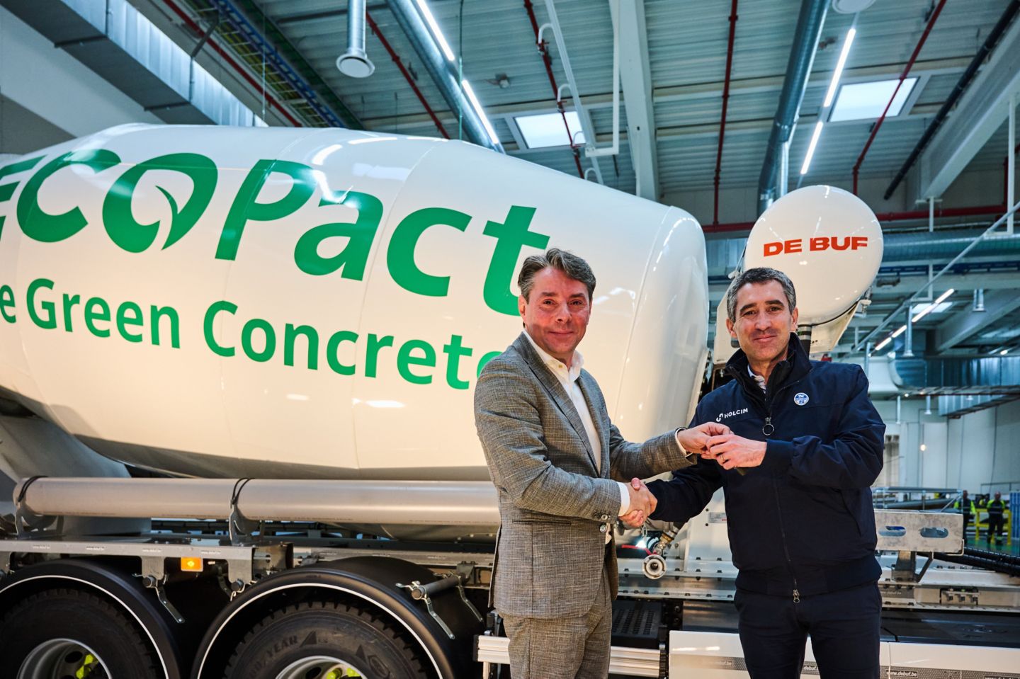 Morgan Malecotte, CEO Holcim Belgique : ''Holcim Belgique veut accélérer la décarbonisation de la construction belge et nous nous engageons à développer une flotte de camion « verts » pour assurer la livraison auprès des chantiers. Cette action concrète, en ligne avec notre projet d’entreprise, en appelle d’autres dans le domaine du transport avec notamment le bateau et le rail.''
